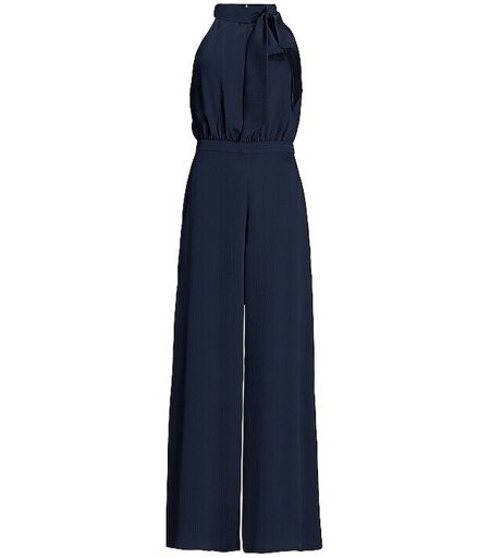 Eleganter Damen Jumpsuit aus gehämmertem Satin Mit Schluppe Stehkrgen Ärmellos Unifarben Farbbezeichnung: Navy Material: 100% Polyester ...