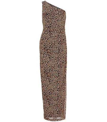 Damen Abendkleid aus Mesh One Shoulder Animal Alloverprint Seitlicher Beinschlitz Taillierte Passform Farbbezeichnung: Leo Print Material: 90% Polyester, 10% Elasthan ...