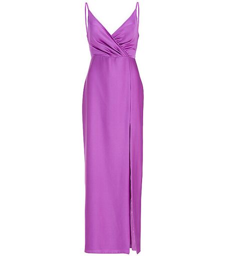Damen Abendkleid aus Satinchiffon V-Ausschnitt Wrap Optik unter der Brust Spaghettiträger Tiefer Rückenausschnitt Schließt am Rücken mit Reißverschluss Unifarben Langer Schlitz auf der Vorderseite Farbbezeichnung: Grape Purple Material: 100% Polyester ...