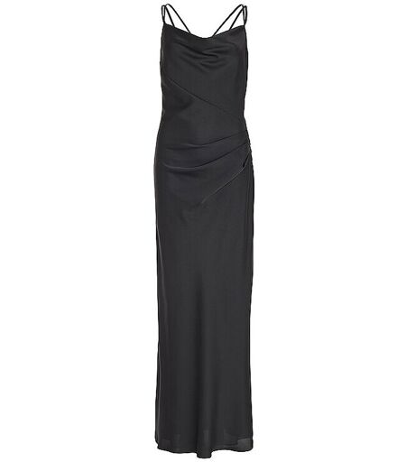 Damen Abendkleid aus Satin Wasserfallausschnitt Spaghettiträger Rücken mit überkreuzten Träger Details Drapierte Taille Unifarben Figurbetonte Passform Farbbezeichnung: Black Material: 100% Polyester ...