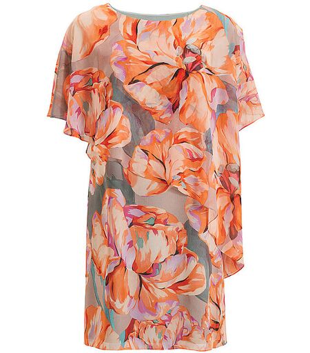 Damen Cocktailkleid aus Chiffon Rundhalsausschnitt Halbarm Asymmetrischer Überwurf Florales Allovermuster Gerade geschnitten Knieumspielend Farbbezeichnung: Orange Material: 100% Polyester ...