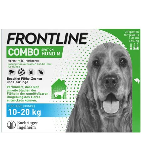 schützen Sie Ihren Vierbeiner zuverlässig gegen Parasiten wie Zecken, Flöhe und Haarlinge. Zusätzlich zu einem Schutz auf dem Tier hemmt FRONTLINE COMBO auch den Befall der direkten häuslichen Umgebung des Tieres durch Floheier, Flohlarven und Flohpuppen. Einfach im Nacken auf der Haut des Hundes aufgetragen, verteilt sich die wasserfeste und geruchslose Lösung mit dem natürlichen Talgfilm über die gesamte Körperoberfläche des Tieres und wirkt so effektiv gegen Parasiten auf dem Tier. Die Kombination aus zwei Wirkstoffen verhindert dabei gleichzeitig, dass sich Floheier, -larven und -puppen in der direkten Umgebung des Tieres entwickeln können. So begleitet FRONTLINE COMBO Hunde auf all ihren Abenteuern wie ein unsichtbarer Schutzmantel.