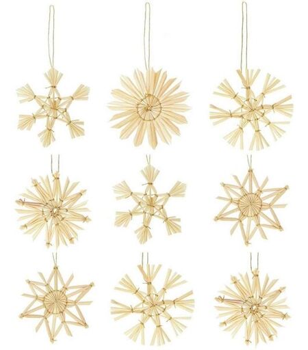 Dieses hochwertige Set aus Strohsternen mit goldenen Fäden besteht aus 18 Sternen in 9 unterschiedlichen Designs. Die goldenen Fäden verleihen den Sternen einen extra Glanz und schauen so besonders edel aus. Die Maße umfassen 6 x 6cm. ...