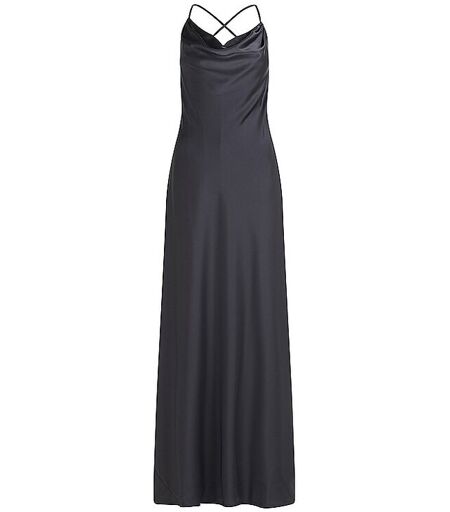 Elegantes Damen Abendkleid Wasserfallausschnitt Verstellbare Träger mit Überkreuzung im Rückenteil Schließt mit Reißverschluss in der hinteren Mitte Langer Schlitz im Vorderteil Figurbetonte Passform Länge: 154 cm Unifarben Farbbezeichnung: Phantom Material: 93% Polyester, 7% Elasthan ...