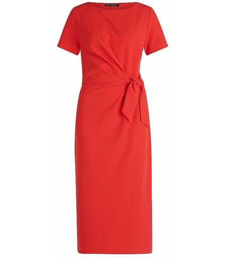 Damen Midikleid aus angenehmem Jersey U-Boot-Ausschnitt Kurzarm Zum Binden in der Taille Figurbetonte Passform Länge: Ca. 115 cm Unifarben Farbbezeichnung: Poppy Red Material: 95% Polyester, 5% Elasthan ...