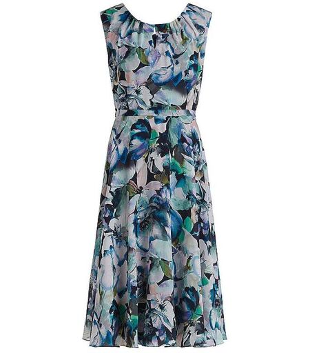 Damen Cocktailkleid aus Chiffon Rundhalsausschnitt mit Raffung Ärmellos Schwingend Allover-Muster Farbbezeichnung: Blue / Green Gesamtlänge: 118 cm Länge ab Taille: 76 cm Material: 100% Polyester ...