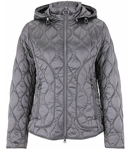 Leichte Damen Steppjacke Stehkragen mit abnehmbarer, verstellbarer Kapuze Schließt mit Zwei-Wege-Reißverschluss Langarm Seitliche Reißverschlusstaschen Leicht taillierte Passform Länge: Ca. 66 cm Unifarben Farbbezeichnung: Pavement Material: 100% Polyamid ...