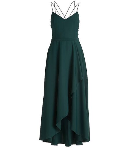 Elegantes Damen Abendkleid V-Ausschnitt Schmale Träger Schließt mit Reißverschluss Seitliche Nahttaschen Volant im Vorderteil Taillierte Passform Gesamtlänge: Ca. 142 cm Länge ab Taille: 100 cm Farbbezeichnung: Dusty Slate Material: 100% Polyester ...