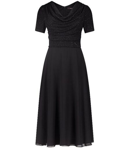 Elegantes Damen Cocktailkleid aus glitzerndem Mesh Wasserfallausschnitt Halbarm Schließt mit Reißverschluss in der hinteren Mitte Ausgestellte Passform Knieumspielend Länge: 118cm Unifarben Farbbezeichnung: Patch Black / Black Material: 94% Polyester, 6% Elasthan ...