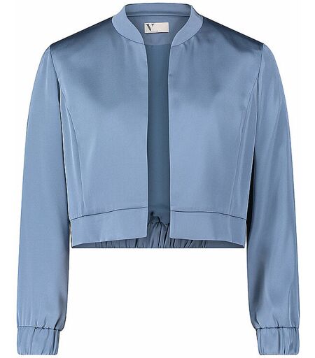 Damen Jäckchen aus Satin Stehkragen Langarm Offen zu tragen ohne Verschluss Unifarben Gerade geschnitten Ärmel und Rücken mit elastischen Bündchen Gesamtlänge: 48 cm Farbbezeichnung: Slate Blue Material: 100% Polyester ...