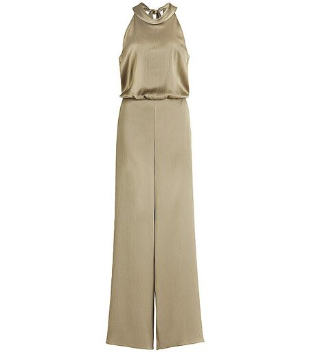 Damen Jumpsuit aus Satin Passform: Figurumspielend Schrittlänge: 84 cm Fussweite: 70 cm Feinmaterial: Satin Ärmel: Ärmellos Ausschnitt: Amerikanischer Ausschnitt Nahttaschen Verschluss: Reißverschluss, Zum Binden Muster: Uni Futter: 100% Polyester Farbbezeichnung: Turf Material: 98 % Polyester, 2 % Elasthan ...