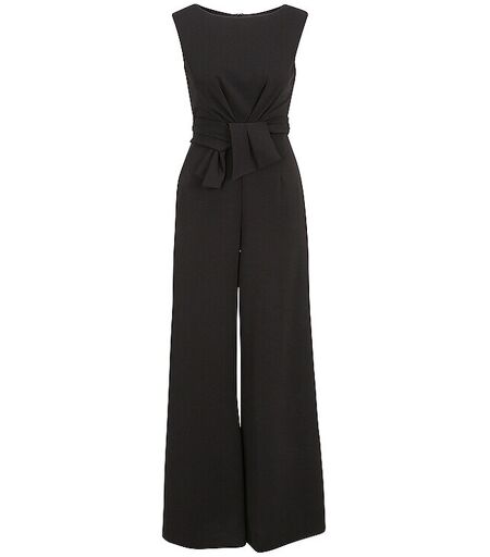 Eleganter Damen Jumpsuit U-Boot-Ausschnitt Ohne Arm Ausgestelltes Bein Bindegürtel an der Taille Unifarben Seitliche Eingriffstaschen Schließt mit Reißverschluss auf der Rückseite Unifarben Lockere Passform Farbbezeichnung: Black Material: 95% Polyester 5% Elasthan ...