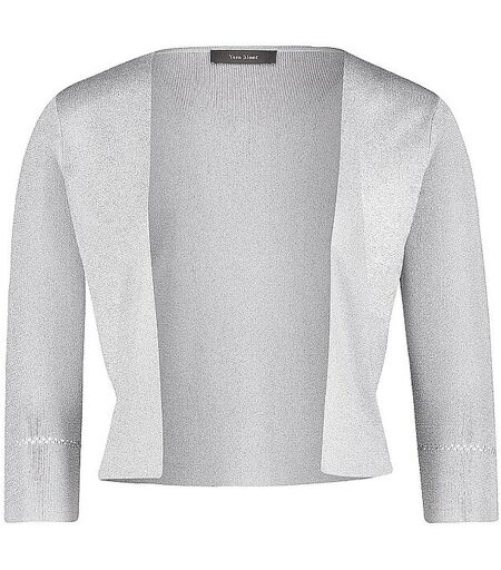 Damen Strickjäckchen aus Feinstrick mit Metallic-Effekt Offen zu tragen 3/4 Ärmel Kurz geschnitten Unifarben Figurnah geschnitten Farbbezeichnung: Grey / Silver Material: 80% Viskose, 20% Polyester ...