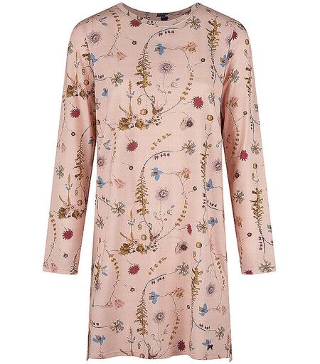 Damen Nachthemd aus Baumwoll-Mischung Rundhalsausschnitt Langarm Floraler Alloverprint Knieumspielende Länge Bequem geschnitten Farbbezeichnung: Dawnpink Material: 47 % Baumwolle, 47 % Modal, 6 % Elasthan ...