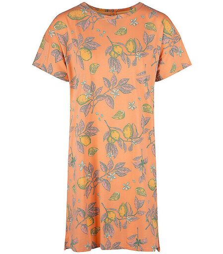 Damen Nachthemd aus elastischem Jersey Rundhalsausschnitt Kurzarm Floraler Print Bequem geschnitten Knieumspielend Farbbezeichnung: Melon Material: 47 % Baumwolle, 47 % Modal, 6 % Elasthan ...