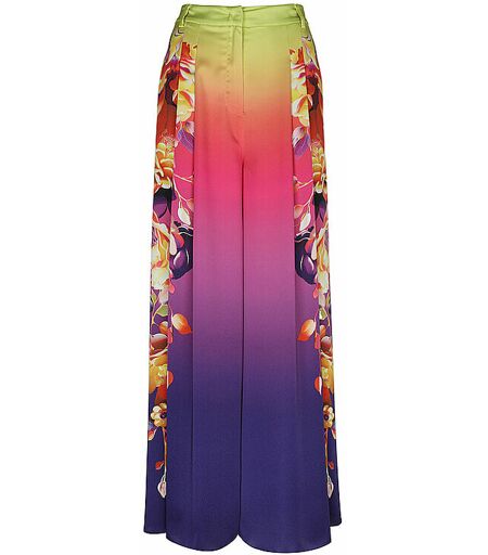 Damen Marlenhose aus fließendem Satin Schließt mit Haken, Knopf und Reißverschluss Mittlere Leibhöhe Farbverlauf mit femininem Blumen Print Lockere Passform Weites, gerades Bein Farbbezeichnung: Deep Purple Material: 51% Polyamid (recycelt) 49% Polyester ...