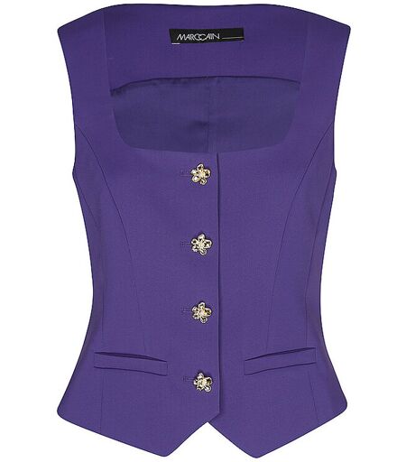 Modische Damen Anzugweste Karreeausschnitt Ohne Arm Schließt mit Knopfleiste Schmale Passform Unifarben Paspelierte Eingriffstaschen Farbbezeichnung: Deep Purple Material: 97% Polyester 3% Elasthan Futter: 100% Polyester ...