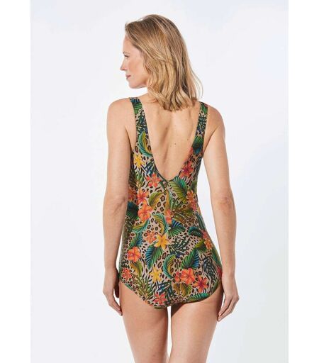 Bügelloser Badeanzug mit Allover-Print - grün / bunt / gemustert - Gr. 46 E von Goldner Fashion