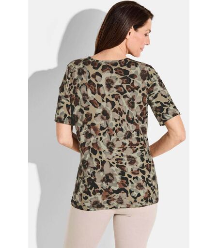Shirt mit Blumen und Leomuster - beige / braun / gemustert - Gr. 50 von Goldner Fashion