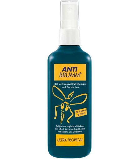 Anwendungsgebiet von Anti Brumm Ultra Tropical SprayWen es in tropische oder subtropische Länder zieht, sollte unbedingt auf einen zuverlässigen Schutz vor Mücken achten. Schließlich ist dort das Risiko besonders hoch, sich mit Krankheiten zu infizieren, die von Mücken übertragen werden. Anti Brumm Ultra Tropical Spray bietet mit 50 Prozent DEET Schutz vor tropischen Mücken, den Überträgern von gefährlichen Krankheiten wie Malaria, Gelb-und Dengue-Fieber und hält diese bis zu 10 Stunden fern. Bei sparsamem Gebrauch ist es schon für Kinder ab 2 Jahren geeignet.