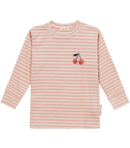 Lässig Shirt langarm Rippqualität Ringel Kirschen Little Gang - rosa natur mehrfarbig - Maedchen - Size: 98