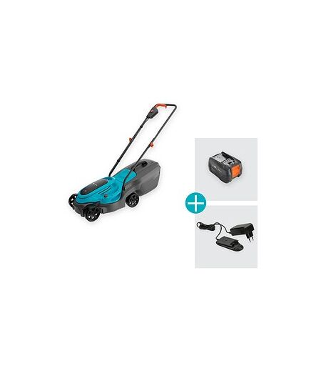 Im Handumdrehen einen gemähten Rasen genießen – GARDENA EasyMax Ready-To-Use Akku-Rasenmäher 18,0 V für bis zu 150,0 m², mit 1 AkkuMit dem GARDENA EasyMax Ready-To-Use Akku-Rasenmäher 18,0 V für bis zu 150,0 m², mit 1 Akku macht das kabellose Mähen dank leistungsstarkem Akku und hoher Nutzerfreundlichkeit besonders viel Spaß. Mit diesem Gerät genießen Sie bei Ihren Mäharbeiten maximale Flexibilität und Bewegungsfreiheit. Geeignet ist es am besten für kleinere Rasenflächen.Entscheidend: genügend AkkupowerÄußerst leistungsstark ist das Modell dank einem 18,0-V-Akku mit einer Akkukapazität von 4,0 Ah. Bei aufgebrauchter Akkuladung können Sie innerhalb kurzer Zeit mit dem mitgelieferten Ladegerät für neue Power sorgen.Am besten geeignet für bis zu 150 m² große RasenflächenNeben der Antriebsart hängt die empfohlene maximale Flächengröße, die Sie beackern können, von der Schnittbreite ab. Bei diesem Exemplar liegt die Schnittbreite des Messers bei 30,0 mm, weshalb es für Rasenflächen von bis zu 150 m² bestens geeignet ist.Schnitthöhe variabelDie mit dem Mäher mögliche Schnitthöhe liegt bei 35 - 65 mm. Das heißt, Sie können mittels einer 3-fachen Schnitthöhenverstellung innerhalb dieses Bereichs die Höhe des stehenbleibenden Grases wählen.Mit Grasfangbehälter!Dank des integrierten Auffangbehälters sparen Sie sich das Rechen des Grases, denn der Rasenschnitt wird einfach aufgesammelt. Im Behälter ist Platz für 25,0 l.Mit verstellbarem GriffbügelDie Unterbringung sowie der Transport des GARDENA Akku-Rasenmäher EasyMax Ready-To-Use ist dank der Klappfunktion des Griffbügels einfach zu bewerkstelligen.Trifft, wonach Sie suchen?Bestellen können Sie den GARDENA EasyMax Ready-To-Use Akku-Rasenmäher 18,0 V für bis zu 150,0 m², mit 1 Akku schnell und bequem hier bei uns online. ...