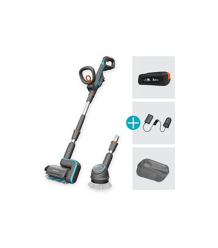GARDENA AquaBrush Universal 04/18V P4A Ready-To-Use Set Akku-Terrassenreiniger-Set 18,0 V, mit 1 Akku