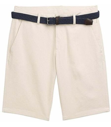 Herren Shorts aus weichem Baumwoll-Mix Klassischer Hosenverschluss Inklusive Gürtel Seitliche Eingriffstaschen Unifarben Schmales Bein Farbbezeichnung: White Beige Zig Zag Structure Material: 97 % Baumwolle, 3 % Elasthan ...