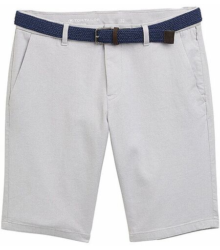 Herren Shorts aus weichem Baumwoll-Mix Klassischer Hosenverschluss Inklusive Gürtel Seitliche Eingriffstaschen Unifarben Schmales Bein Farbbezeichnung: White Grey Zigzag Dobby Material: 97 % Baumwolle, 3 % Elasthan ...