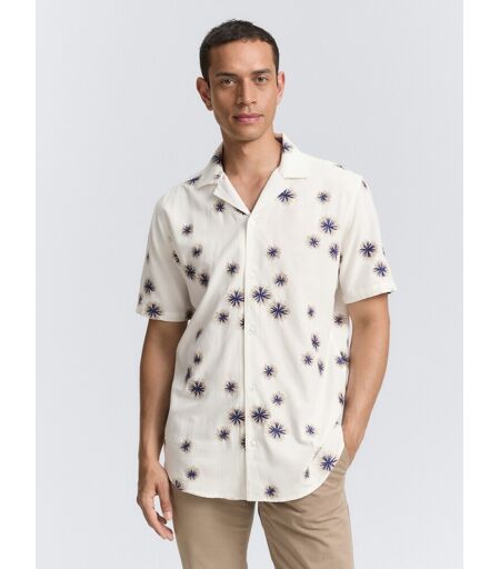 TOM TAILOR Herren Regular Fit Kurzarmhemd im Hawaii-Look, weiß, Gemustert, Gr. XXXL, baumwolle