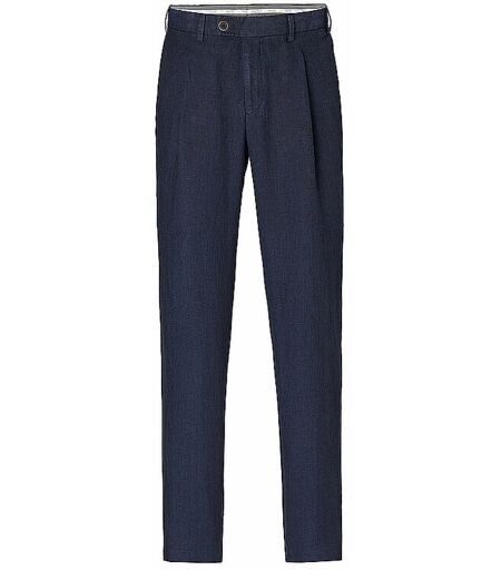 Herren Chino aus reinem Leinen Haken-, Knopf- und Reißverschluss Französische Eingrifftaschen Geknöpfte Leistentaschen Drei-Punkt-Bundverschluss Änderungsfreundlicher Schneiderbund Unifarben Gerade geschnitten Leicht zulaufendes Bein Farbbezeichnung: Navy Material: 100% Leinen ...