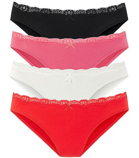 LASCANA 4er-Pack Slips von Lascana. Spitzenkante am Bund mit kleinem Schleifendetail. Normale Passform. Weiche, trageangenehme Qualität. Damen Slip aus Baumwoll-Stretch 4er Packung Bund mit Spitzenbesatz und kleiner Masche Hoher Tragekomfort Unifarben Farbbezeichnung: Pink Box Material: 95% Baumwolle, 5% Elasthan ...