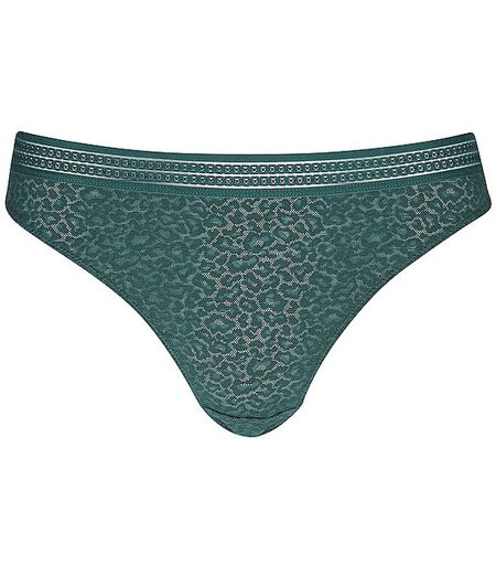 Modischer Damen String aus hübschem Soft-Mesh in Leo-Optik Hübscher Bund im Streifen-Design Mit eingearbeitetem Baumwollzwickel Farbbezeichnung: Fig Green Material: 85% Polyamid, 15% Elasthan ...