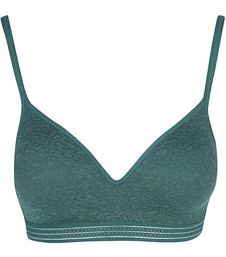 Modischer Damen Bralette-BH mit eingearbeitetem Push-up Kissen aus modischer Spitze Unterbrustband Individuell verstellbare Träger sowie Rückenverschluss Unifarben Farbbezeichnung: Fig Green Material: 36% Polyamid, 29% Polyester, 27% Baumwolle, 8% Elasthan ...
