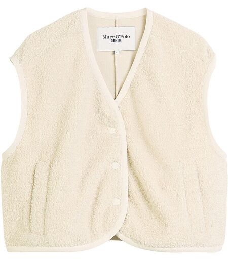Damen Gilte aus weichem Teddyfell V-Ausschnitt Ohne Arm Schließt mit Druckknopfleiste Seitliche Eingriffstaschen Gerade Passform Unifarben Farbbezeichnung: White Blush Material: 100% Polyester Die Marke Marc O`Polo ist Mitglied der Fair Wear Foundation. ...