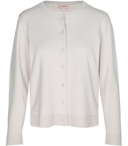 Damen Strickjacke aus Viskose-Mischung Gerippter Rundhalsausschnitt Schließt mit Knopfleiste Langarm Rippbündchen an Ärmel und Saum Kurze Seitenschlitze Hoher Tragekomfort Unifarben Farbbezeichnung: Sand Melange Material: 72% Viskose, 28% Polyester ...