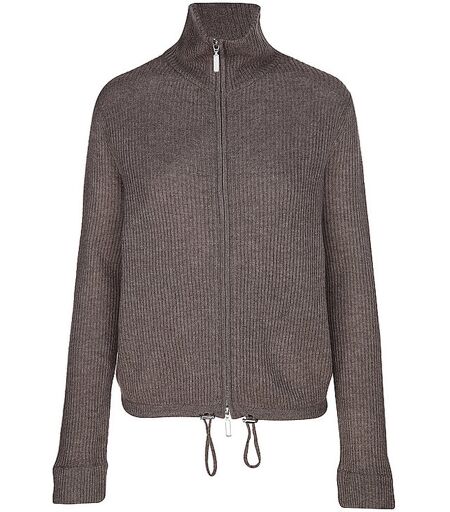 Damen Strickjacke aus Kaschmir Rippstrick Stehkragen Langarm Schließt mit Zwei-Weg-Reißverschluss Unifarben Weitenverstellbarer Saum mit Tunnelzug Lockere Passform Farbbezeichnung: Mocca Material: 100% Kaschmir ...