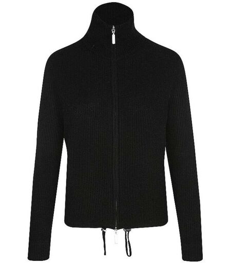 Damen Strickjacke aus Kaschmir Rippstrick Stehkragen Langarm Schließt mit Zwei-Weg-Reißverschluss Unifarben Weitenverstellbarer Saum mit Tunnelzug Lockere Passform Farbbezeichnung: Schwarz Material: 100% Kaschmir ...