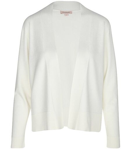 Damen Cardigan aus Feinstrick Offene Passform Langarm Gerippte Bündchen an Ärmel und Saum Weicher Griff Locker geschnitten Angenehmer Tragekomfort Farbbezeichnung: Offwhite Material: 70% Viskose, 30% Polyester ...