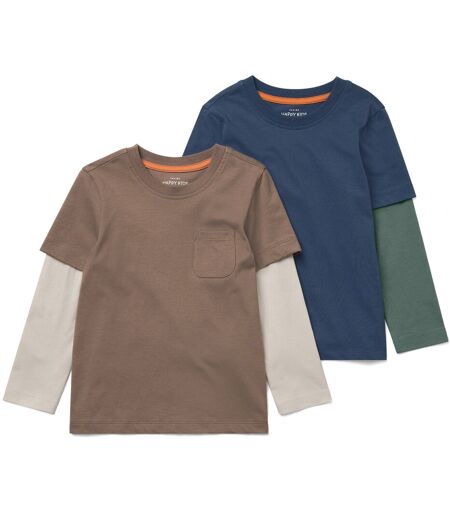 2 Kinder-2-in1-Langarmshirts Farbe: 1x braun mit beigen Ärmeln, 1x dunkelblau mit dunkelgrünen Ärmeln Material: 100% Baumwolle Maße: Gesamtlänge ca. 40 cm (Gr. 98/104) Sonstige Hinweise: Größenlauf/Alter: Gr. 86/92 (ca. 12 – 24 M.) Gr. 98/104 (ca. 2 – 4 J.) Gr. 110/116 (ca. 4 – 6 J.) Gr. 122/128 (ca. 6 – 8 J.) Gr. 134/140 (ca. 8 – 10 J.) 2-in-1-Look mit angedeuteten zweilagigen Ärmeln in KontrastoptikEin Shirt mit aufgesetzter BrusttascheAngenehm weiche Single-Jersey-QualitätGr. 86/92 mit 2 Druckknöpfen an der Schulter für einfaches An- und AusziehenGerade FormRundhalsausschnittGOTS organic – in conversion, zertifiziert durch CU 809415Diese Shirts fördern den Anbau nachhaltiger Baumwolle ...