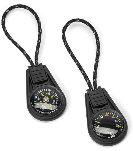 2 Reißverschlussanhänger Farbe: Schwarz mit reflektierendem Band Zifferblatt lime Material: Kompass und Thermometer 100% Acrylnitril-Butadien-Styrol Flüssigkeitslager Aromaten, Sulfur und normales Alkan Schnur 100% Polypropylen Maße: Ø Kompass und Thermometer je ca. 2,5 cm Schnurlänge je ca. 1,5 cm Thermometer und KompassZum Anbringen an Jacken, Taschen, Hosen, als Schlüsselanhänger etc. Zum einfacheren Greifen und Schließen jeglicher ReißverschlüsseVergrößert kleine oder ersetzt abgerissene ReißverschlüsseMit reflektierendem BandIdeal beim Camping, beim Wandern und für unterwegs ...