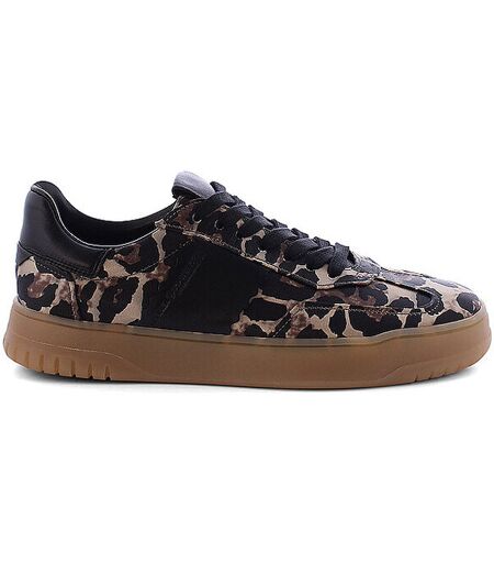 Damen Sneaker aus Velourleder Gerundete Spitze Flache Sohle Rutschhemmende Außensohle Außensohle mit Riffel-Details Allover-Leo-Muster Farbbezeichnung: Camel / Sch Sho Material: Leder Innensohle: Leder Außensohle: Gummi ...