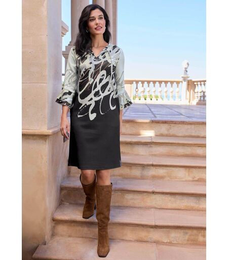 alba moda Kleid aus komfortabler Scuba-Ware schwarz / stein / kupferfarben 46