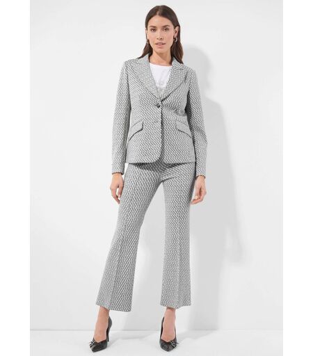 Blazer in sportlich-eleganter Form von MARC AUREL. Ein Highlight-Piece für Ihren Wow-Auftritt mit modischer Grandezza! Der Blazer ist mit wunderschön geformtem Reverskragen, diagonal verlaufenden, paspelierten Pattentaschen und abgerundeter Saumkante gearbeitet. Feminin tailliert mit dezenten Schulterpolstern formt der Blazer eine weibliche und dabei selbstbewusste Power-Silhouette. Vorne lässt er sich mit zwei Metallknöpfen schließen, der klassisch gearbeitete, gerade Ärmel endet mit einem Schlitz und Kissing-Buttons. Ein verdeckter Gehschlitz in der hinteren Mitte sorgt für Bewegungsfreiheit. Der Blazer sitzt perfekt und ist dank der elastischen Jacquard-Qualität sehr bequem. Modischer Blickfang: Das grafische Webmuster mit metallisierenden Glanzgarnen. Länge in Gr. 38 ca. 60 cm.Styling-Tipp: Kombinieren Sie den Blazer mit der passenden Hose für einen stylischen Business-Look! ...
