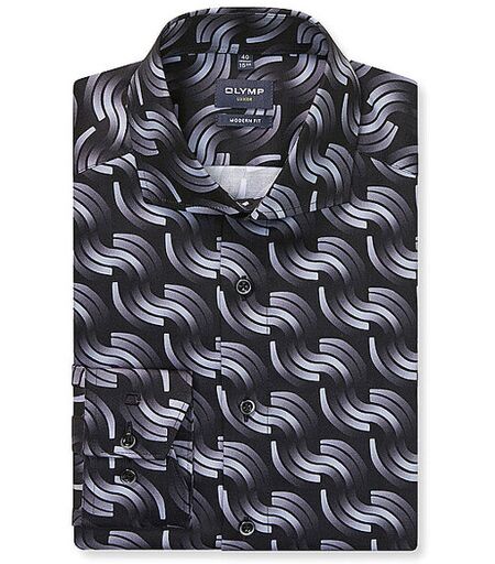 Herren Hemd aus reiner Baumwolle Kentkragen Langarm Schließt mit Knopfleiste Schmale Passform Grafischer Print Farbbezeichnung: Schwarz/Grau Material: 100% Baumwolle Die Marke OLYMP ist Mitglied der Fair Wear Foundation. ...