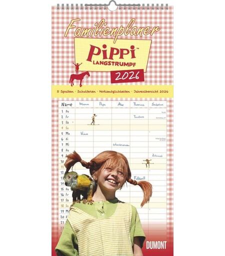 Neumann Verlage GmbH & Co. KG Familienplaner Pippi Langstrumpf 2026 - Familien-Timer 22x45 cm - mit Ferienterminen - 5 Spalten