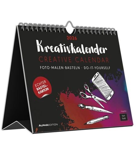 Neumann Verlage GmbH & Co. KG Kreativ-Kalender Tischaufsteller quer schwarz 2026 - Kreativ-Kalender - DIY-Kalender - Kalender zum Basteln - Tischkalender - 20x16