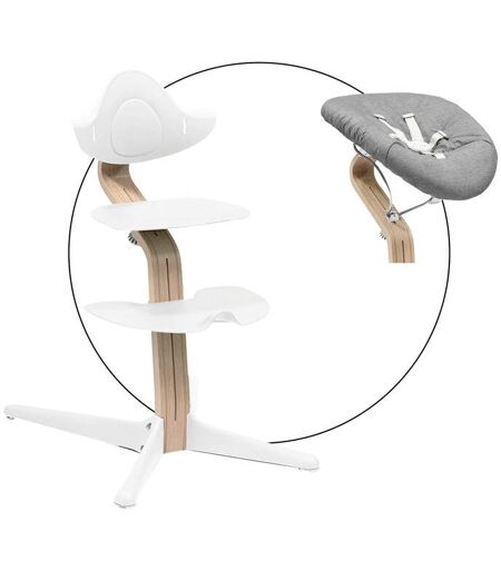 Der Stokke Nomi-Hochstuhl kann ein Leben lang verwendet werden. Dank seiner stufenlosen Verstellbarkeit passt er sich an jede Lebensphase optimal an. Das Sitzen auf Augenhöhe erleichtert Deinem Kind die Interaktion bei Tisch. Die Fußstütze sorgt für Stabilität. Das skandinavische Design mit Eiche/Buche-Furnier und Kunststoffkontrasten begeistert schon auf den ersten Blick. Jetzt auch im praktischen Bundle mit Stokke Nomi Newborn-Set! Altersempfehlung: ab 3 Jahren; ab Geburt mit Newborn-Set; ab 6 Monaten mit Baby-Set (separat erhältlich); belastbar bis 110 kg Material: Hochstuhl: Mittelträger Eiche/Buche-Furnier, Rückenlehne, Sitz, Fußstütze und Fußkreuz: Polypropylen, Schrauben Metall; Newborn-Set: Polypropylen, kohlenstoffarmer DIN-Stahl; Netzgewebe 100 % Polyester; Textil-Set: Bezug 85 % Polyester, 15 % Baumwolle, Füllung 100 % Polyester, Netzgewebe 100 % Polyester Verstellbarkeit: stufenlose Anpassung; Newborn-Set mit stufenlos verstellbarem Neigungswinkel Sicherheit: kippsichere Rollen; Newborn-Set mit längenverstellbarem 5-Punkt-Sicherheitsgurt Lieferumfang: Hochstuhl-Montage-Set Nomi von Stokke inkl. Rückenlehne, Mittelträger, Fußkreuz, Fußplatte und Sitz, Nomi Newborn-Set mit Netzgewebe, Textil-Set und 5-Punkt-Gurt Dank seiner stufenlosen Anpassung ohne zusätzliches Werkzeug bietet der Hochstuhl einen ergonomischen Sitz in jeder Phase des Lebens. Die perfekte Ergänzung für den Anfang sind das Baby-Set und das Sitzkissen des gleichnamigen Herstellers. Sie sind separat erhältlich. Ohne das Zubehör ist er ab drei Jahren geeignet, mit dem im Lieferumfang enthaltenen Newborn-Set ab Geburt. Peter Opsvik hat Nomi basierend auf der gleichen Idee wie den Stuhl Tripp Trapp kreiert: Dein Mini kann die Mahlzeiten entspannt, auf Augenhöhe und interaktiver wahrnehmen. Zugleich fällt es ihm leichter, sich auf die Aktivitäten rund um den Tisch zu konzentrieren. Die physische Umgebung wird sozusagen an die Größe des Kindes und seine Bedürfnisse angepasst. Die stabile Fußstütze sorgt für zusätzlichen Komfort. Auch sie lässt sich entsprechend des Wachstum verstellen. Die Tiefe wird automatisch angepasst, wenn Du die Höhe von Sitz und Fußstütze fixierst. Der Mittelträger verleiht dem Hochstuhl eine stabile Festigkeit, eine lange Haltbarkeit und große Flexibilität. Aufgrund seines geringen Gewichts lässt sich der Stuhl überall und in jedem Zimmer verwenden. Mit den leichtlaufenden Rollen gestaltet sich der Transport von einem Raum in den nächsten unkompliziert. Besonders praktisch: Zur Reinigung des Bodens nach dem Essen kannst Du ihn an der Tischkante aufhängen. Der Stuhl kann mit bis zu 110 Kilogramm belastet werden. Sein klares nordisches Design fügt sich in zahlreiche Wohnambientes perfekt ein. Der Mittelträger des Hochstuhls wird aus Eiche/Buche-Furnier gefertigt. So ergibt sich ein markanter Kontrast zu den farblich abgesetzten Elementen von Rückenlehne, Sitz, Fußstütze und Fußkreuz. Nomi Newborn-Set Mit dem Newborn Set für den Hochstuhl Nomi... ...