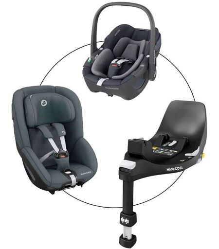 Die praktische Drehfunktion und eine sechsfach verstellbare Kopfstütze sind nicht die einzigen Innovationen der Babyschale Pebble 360 i-Size. Auch eine einfache Handhabung, höchste Sicherheit und maximaler Komfort für das Baby zeichnen das Modell von Maxi-Cosi aus. Jetzt auch im praktischen Bundle mit der Isofix-Base FamilyFix 360 und dem Folgesitz Pearl 360 i-Size von Maxi-Cosi! i-Size: Babyschale Pebble 45 bis 83 cm; Kindersitz Pearl 45 bis 105 cm Altersempfehlung: Babyschale Pebble ab Geburt bis ca. 12 Monate, Kindersitz Pearl ab Geburt (mit separat erhältlicher Neugeborenen-Einlage) bis ca. 4 Jahre Norm: ECE R129/03 Verwendung Babyschale: Sicherheitssitz fürs Auto, Travelsystem Befestigung im Fahrzeug: Isofix-Base FamilyFix 360 (Babyschale über Fahrzeuggurt möglich) Gewicht: Babyschale Pebble 4,3 kg; Kindersitz Pearl 8 kg Fahrtrichtung: Babyschale Pebble rückwärtsgerichtet; Kindersitz Pearl rückwärtsgerichtet, ab 15 Monaten vorwärts- oder rückwärtsgerichtet Ausstattung Babyschale Pebble 360: G-Cell Seitenaufprall-Schutz, 3-Punkt-Hosenträger-Gurtsystem, Easy-in-Gurtsystem, Inlay für Neugeborene, Sonnenverdeck, temperaturregulierender Bezug (ClimaFlow), 6-fach verstellbare Kopfstütze Ausstattung Kindersitz Pearl 360: G-Cell-Seitenaufprallschutz, Memory-Schaum, Drehfunktion, Easy-In-5-Punkt-Gurtsystem mit weicher Polsterung, Rückenlehne 5-fach verstellbar, gleichzeitig verstellbare Kopfstütze und Hosenträgergurte, ClimaFlow-Gewebe und perforierte Seiten, Bezug abnehmbar und waschbar Isofix-Base FamilyFix 360: FlexiSpin-Rotation, Drehsperre, Installations-Feedback, höhenverstellbarer Stützfuß Lieferumfang: Babyschale Pebble 360 i-Size inkl. Neugeboreneneinlage und Gurtpolster, Kindersitz Pearl 360 mit Schulter- und Schrittgurtpolster, Isofix-Base FamilyFix 360 Babyschale Pebble 360 i-Size In der Babyschale Maxi-Cosi Pebble 360 i-Size sind Babys mit einer Körpergröße von 45 bis 83 cm sicher aufgehoben. Das Sicherheitsprofil ist nach UN/ECE 129/03 zugelassen und entspricht dem höchsten Standard. Dank des integrierten G-Cell Seitenaufprallschutzes ist optimale Sicherheit geboten, sollte es zu einem Aufprall kommen. Das Anschnallen ist mithilfe des Easy-in-Gurtsystems ganz einfach. Die Neugeborenen-Einlage bietet Babys eine optimale Unterstützung. Das ClimaFlow-Gewebe und die perforierten Seiten punkten mit temperaturregulierendem Komfort. Die Kopfstütze ist sechsfach verstellbar und passt sich so der Größe der Minis an. Das Sonnenverdeck im XL-Format schützt vor Sonnenstrahlen und verhindert, dass das Baby geblendet wird. Dank des ergonomisch verstellbaren Tragebügels lässt sich die Babyschale bequem transportieren. Kindersitz Pearl 360 i-Size Der Kindersitz Pearl 360 von Maxi-Cosi gehört zur Gruppe der i-Size-Sitze. Mit der separat erhältlichen Neugeborenen-Einlage ist der Sitz schon ab Geburt des Kindes rückwärtsgerichtet nutzbar. Danach kann das Modell bis zum Alter von vier Jahren vorwärts- und rückwärtsgerichtet verwendet werden. Ganz... ...