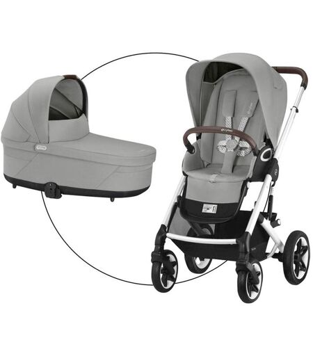 Jetzt auch im praktischen Bundle: Der Talos S Lux und die passende Tragewanne Cot S Lux. Mit dem Kinderwagen Talos S Lux von CYBEX aus der Gold-Linie sind kleine Fahrgäste und ihre Eltern immer komfortabel unterwegs. Das Gefährt ist auch auf Waldwegen oder im Gelände in seinem Element: Die gefederten All-Terrain-Räder machen es möglich. Der verstärkte Seitenschutz sorgt für ein Plus an Sicherheit. Altersempfehlung: ab Geburt Belastbarkeit: bis 22 kg, Einkaufskorb bis 5 kg, Tragewanne bis 9 kg Verwendung: geländetauglich; Travelsystem mit Babyschale (separat erhältlich) Klappmaß: 44(L) x 60(B) x 78(H) cm Gewicht: Gestell und Sportsitz 14,2 kg, Tragewanne 4,6 kg Räder: pannenfreie All-Terrain-Räder, Allradfederung, schwenk- und feststellbare Vorderräder Lieferumfang: Gestell mit Rädern und Korb, Sportsitz mit Verdeck und Sicherheitsbügel Gestell: einhändig faltbar, höhenverstellbarer Schieber, Feststellbremse Sportsitz: wendbar, erweiterter Seitenschutz für Oberkörper und Hüften, 5-Punkt-Gurt, 3-fach bis in die Liegeposition verstellbare Rückenlehne, 3-fach verstellbare Fußstütze, Sicherheitsbügel, ausziehbares Sonnenverdeck mit UV-Schutz 50+ und Mesh-Fenster Tragewanne: weich gepolsterte Schaumstoff-Matratze, verstellbares Verdeck (UV-Schutz 50+), abnehmbare Winddecke, Tragegriff, Memory-Knöpfe, Liegefläche 78(L) x 33(B) cm Sicherheit und Komfort Nimm Dein Baby mit auf seine ersten Ausflüge nach draußen, ganz egal, ob die Sonne scheint oder Wolken aufziehen. Dein Mini ist sicher und gemütlich eingehüllt in den Aufsatz Cot S Lux. Ein erstes Nestchen mit großer Liegefläche und eine federweiche Matratze sorgen für einen hohen Komfort und bieten eine perfekte, kuschelige Umgebung. Dank des UV-Schutzes von 50+ und einem abklappbaren Sonnenverdeck liegt es sich angenehm, egal, ob Dein Baby schlummert oder wach ist. Die Tragewanne kann solo mit ihren Memory-Knöpfen auf das Gestell aufgeklickt werden. Tipp: Du kannst sie auch mit einer weiteren Wanne, einer Babyschale oder einem Sportsitz kombinieren, ganz wie Du es möchtest. Dank der Standfüße an der Unterseite kannst Du die Wanne auf den Boden stellen. Cool: Auf Reisen oder unterwegs wird die Wanne so zum praktischen Babybett. Der Kinderwagen Talos S Lux von CXBEX Gold begleitet kleine und große Entdecker nach draußen. Das Gefährt ist mit einem Seitenschutz versehen, der für ein Plus an Sicherheit sorgt. Die Rückenlehne und die Fußstütze sind dreifach verstellbar. Du hast hier auch die Option, die Lehne in eine flache, bequeme Liegeposition zu neigen: Das ermöglicht Deinem Mini jederzeit ein erholsames Schläfchen. Das 5-Punkt-Gurtsystem hält Dein Kind zuverlässig im Sitz fest. Am bei Bedarf abnehmbaren Spielbügel kann sich Dein kleiner Fahrgast festhalten, was die Sicherheit erhöht. Bei Sonne, Regen oder Wind verstellst Du das große Verdeck entsprechend den Anforderungen. Es verfügt über einen hohen, kindgerechten UV-Schutz von 50+ und ist mit einer Sonnenblende und einem atmungsaktiven... ...